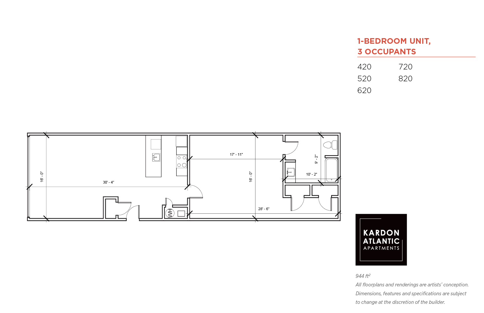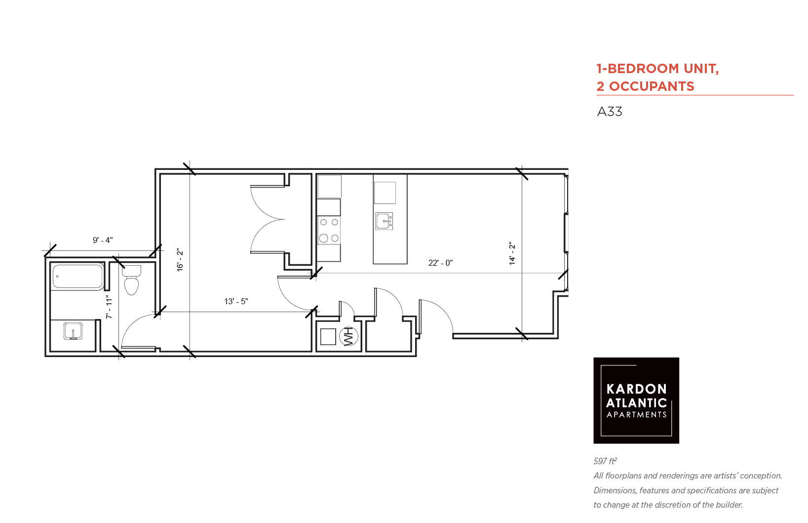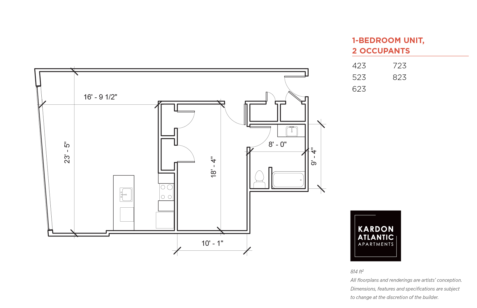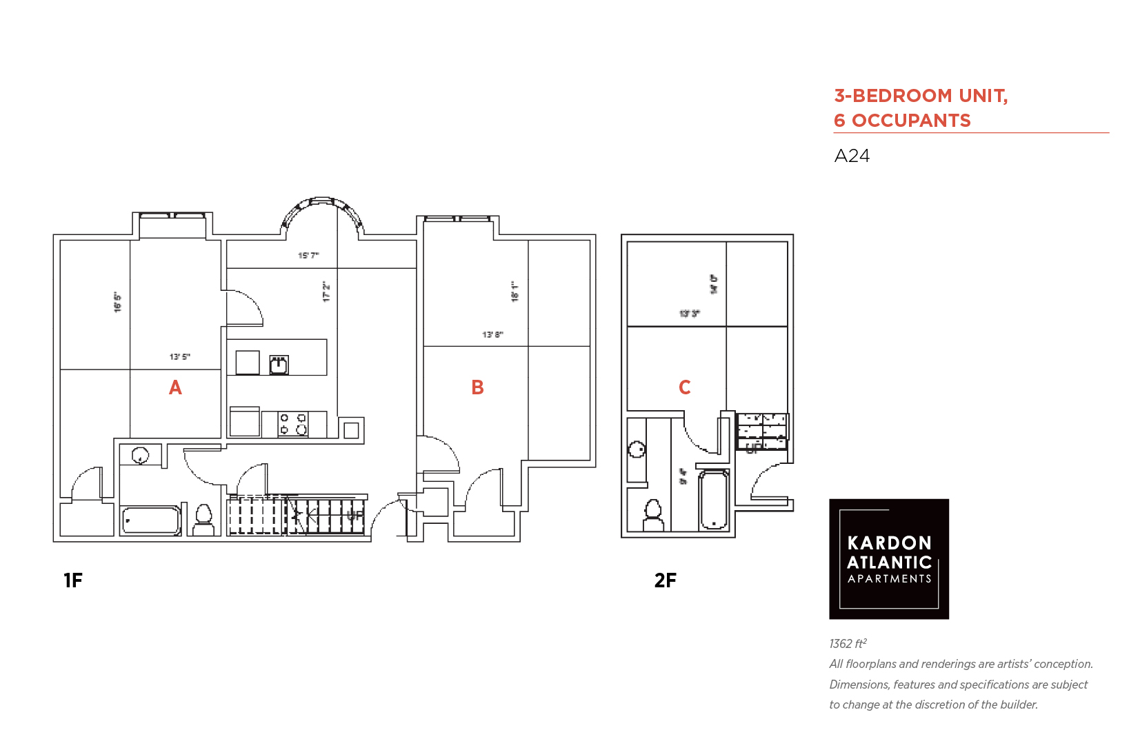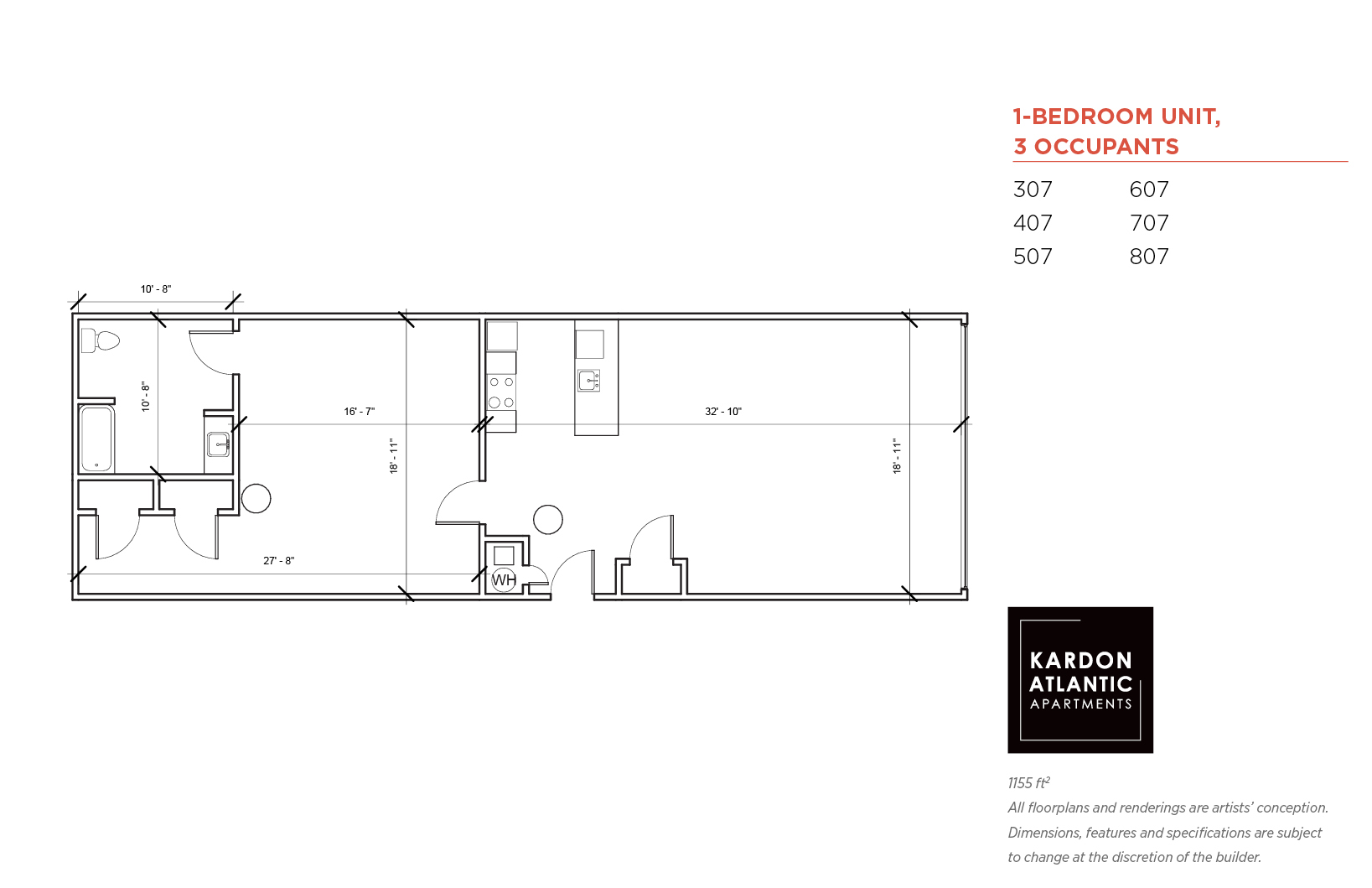 1BR/1BA (up to 3 ppl) $1500-$1650