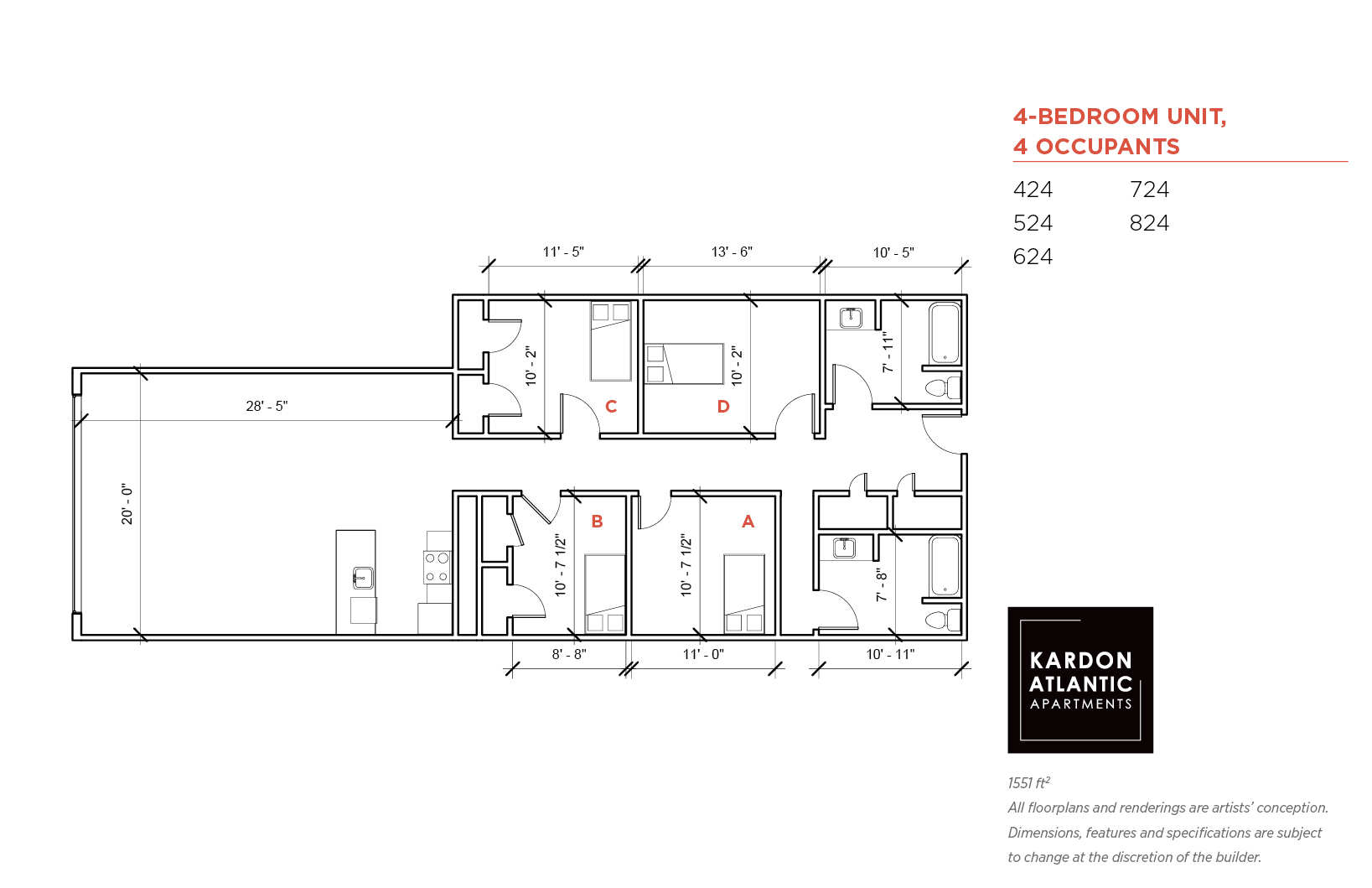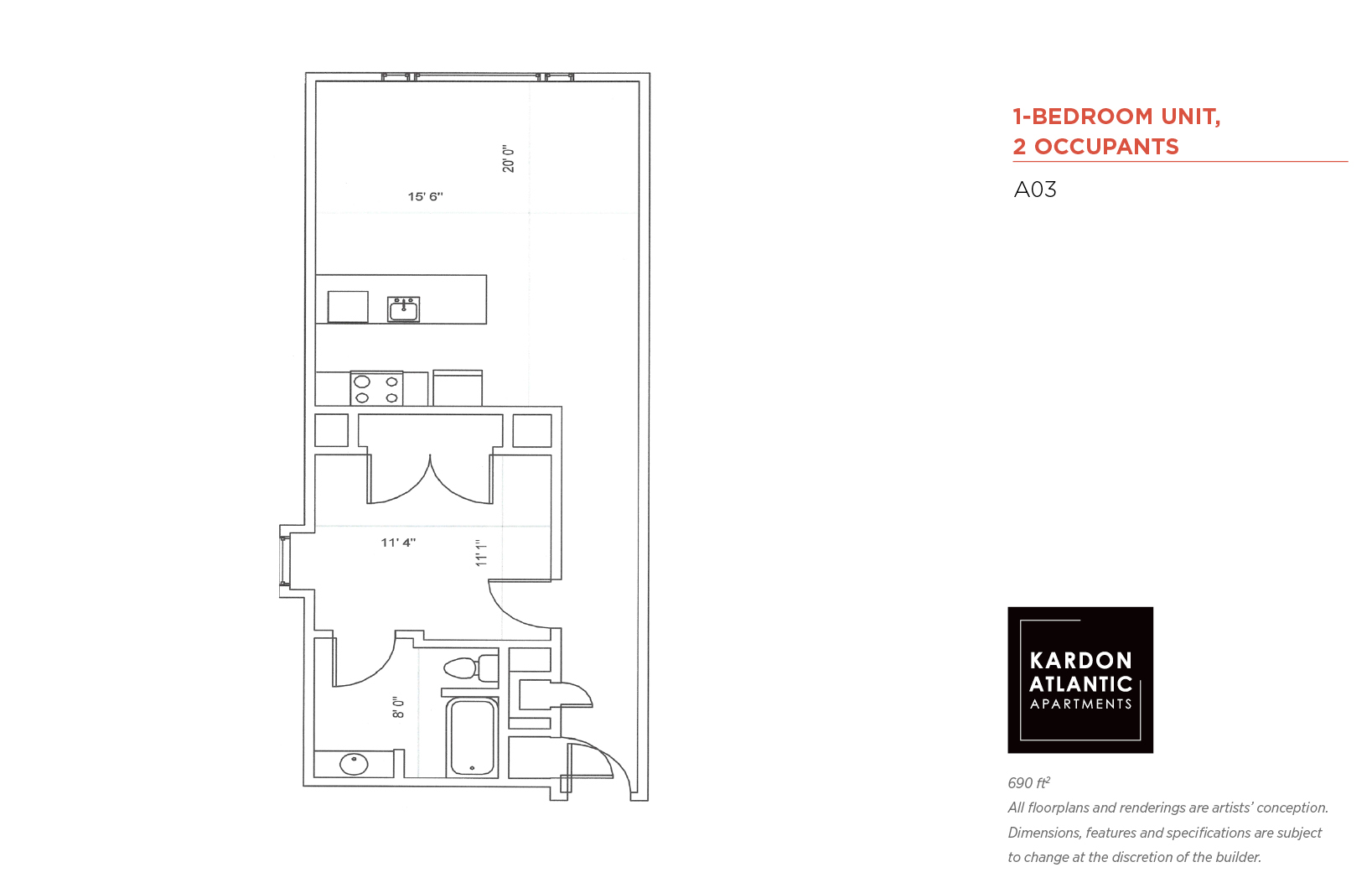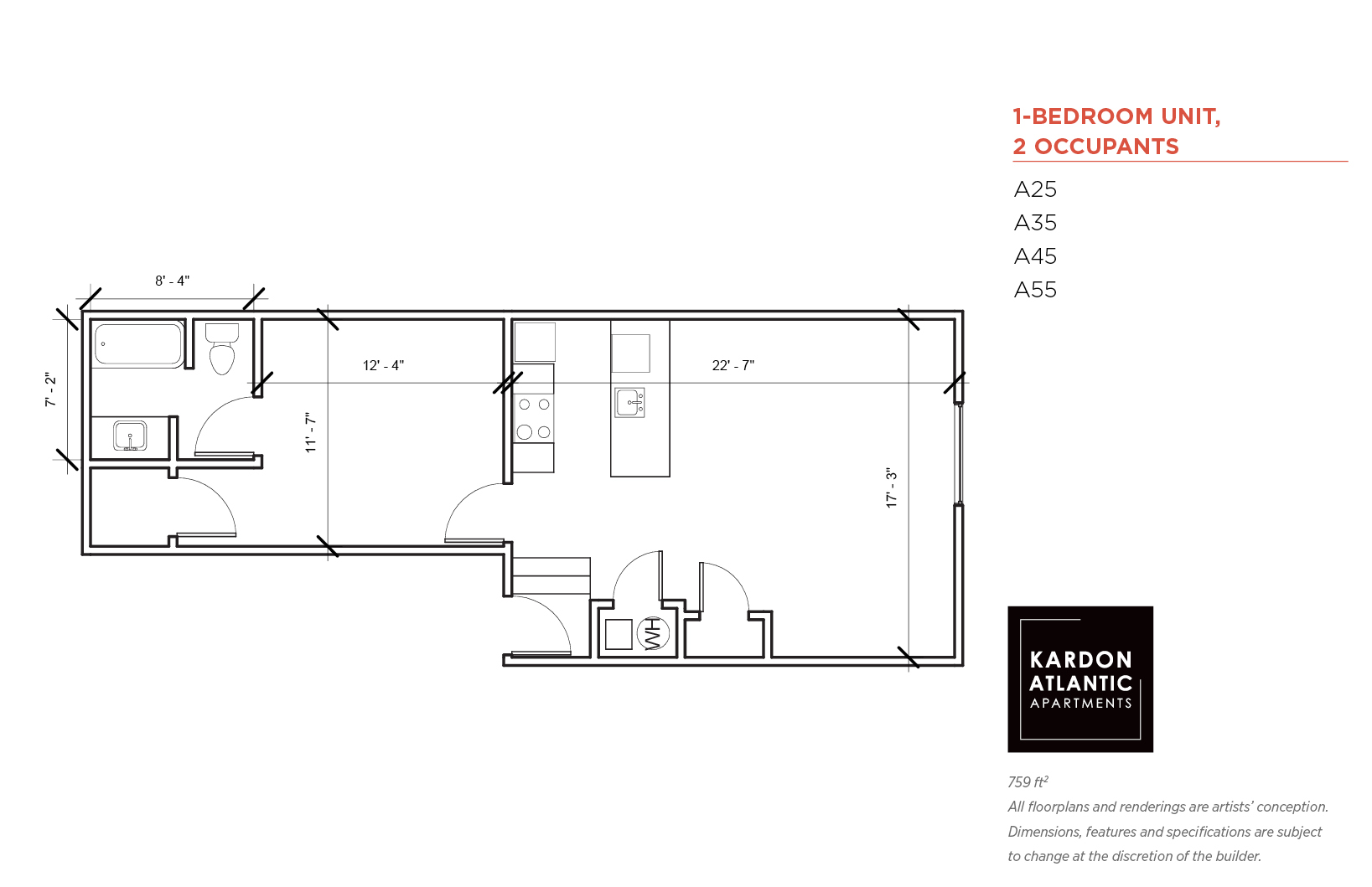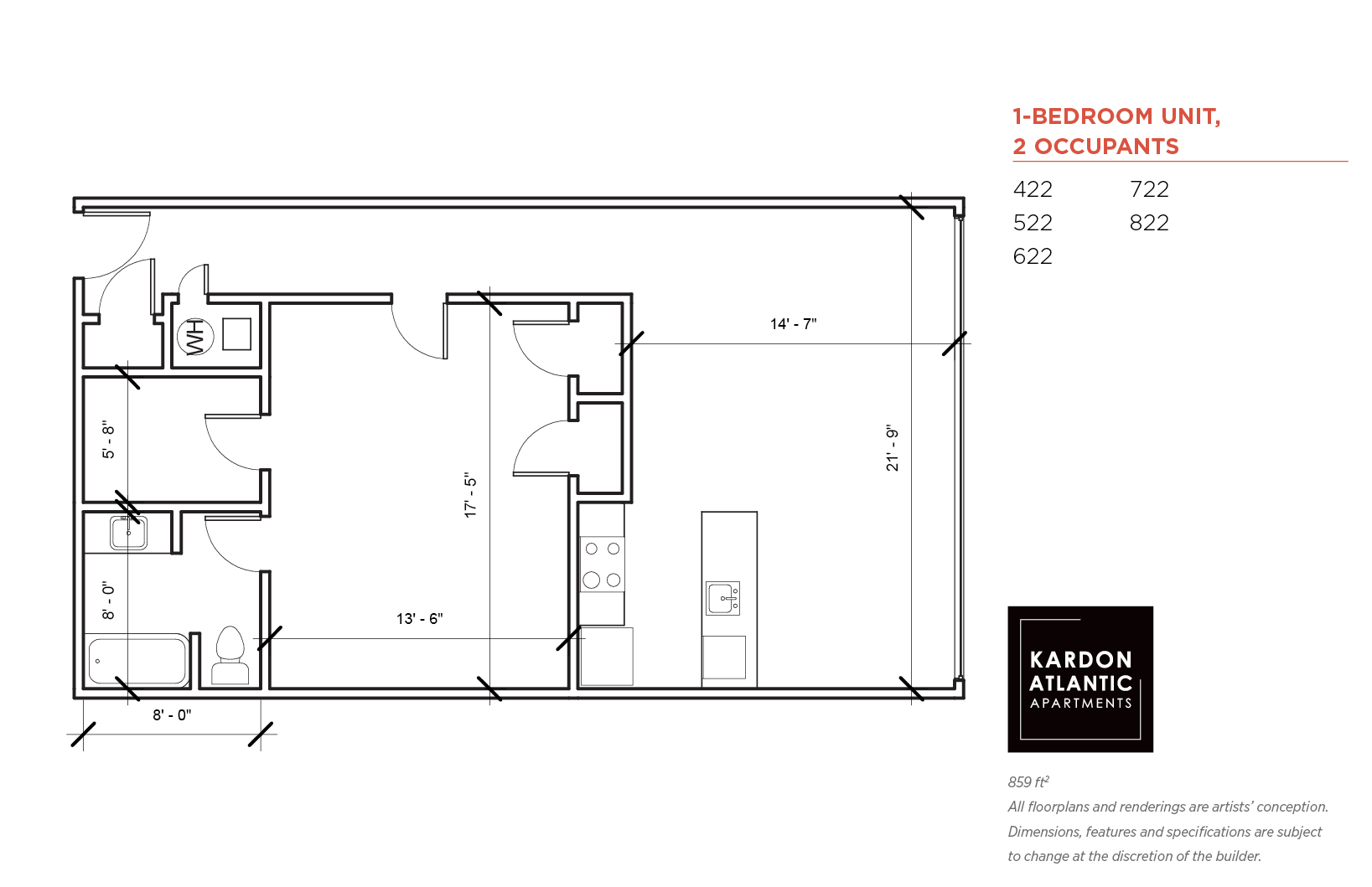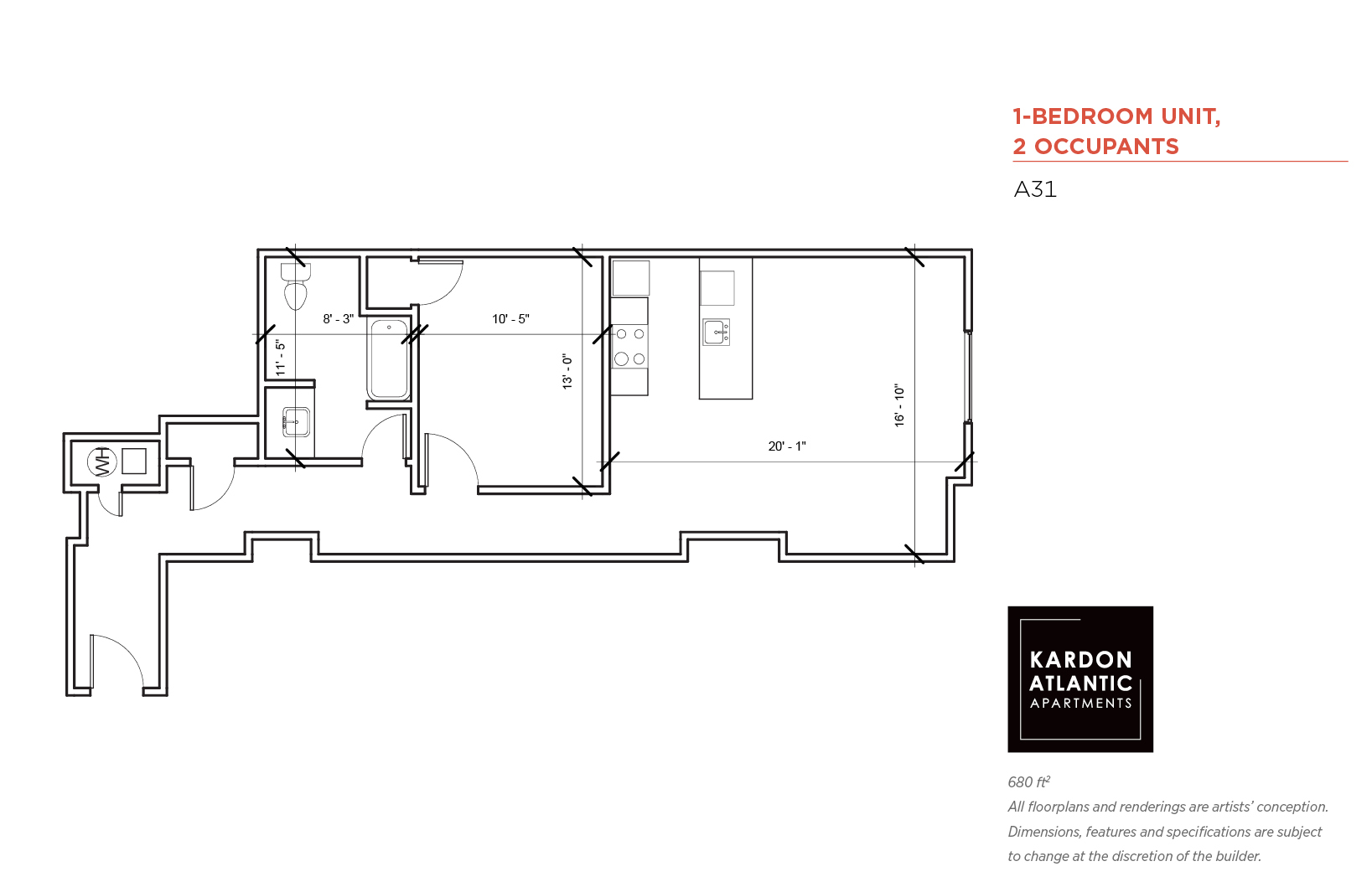 1BR/1BA (up to 3 ppl) $1500-$1650