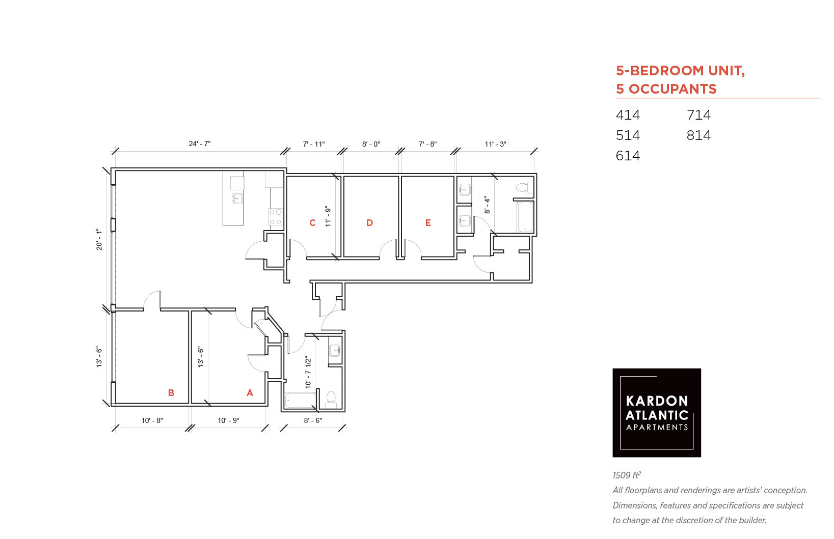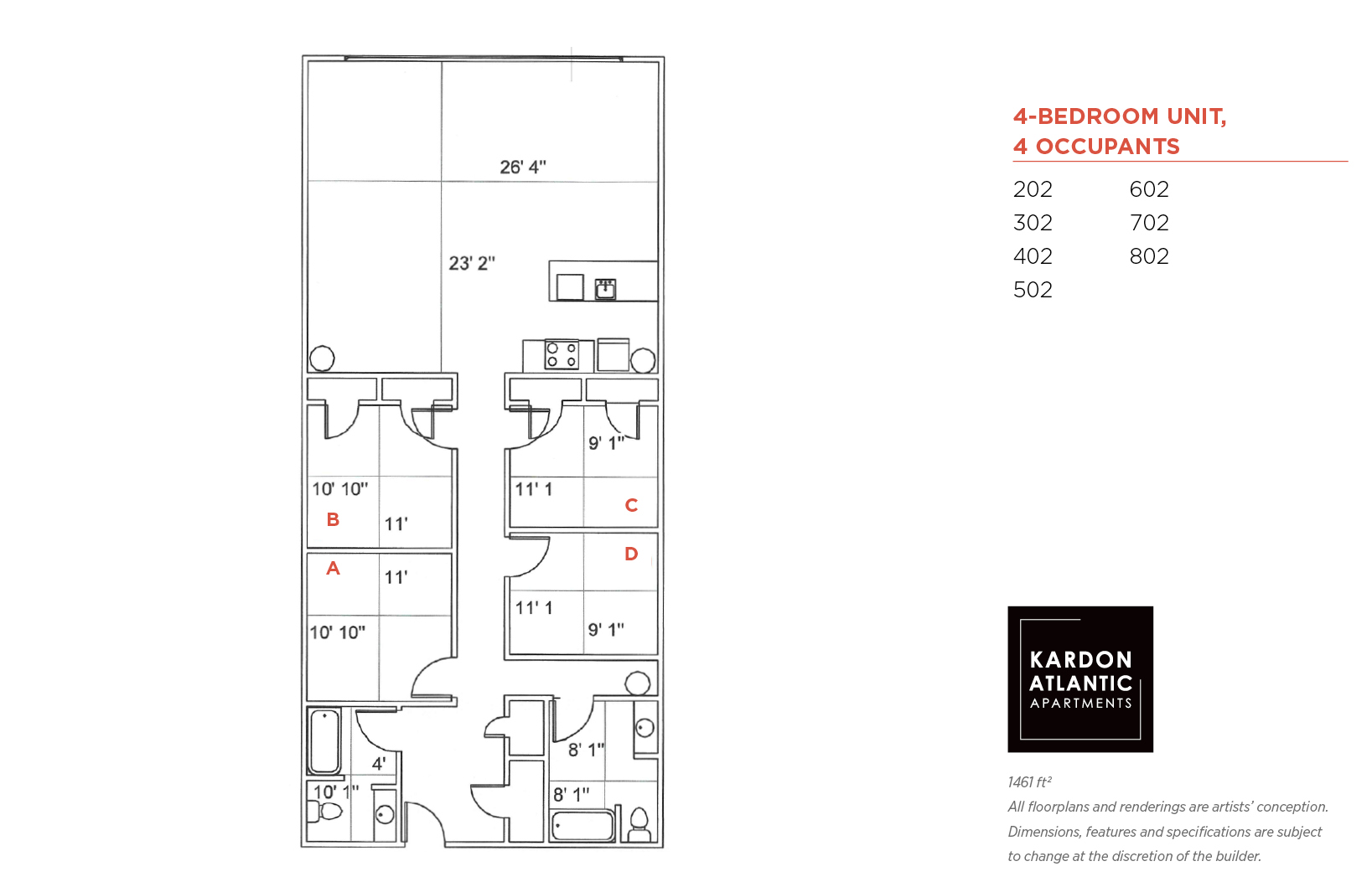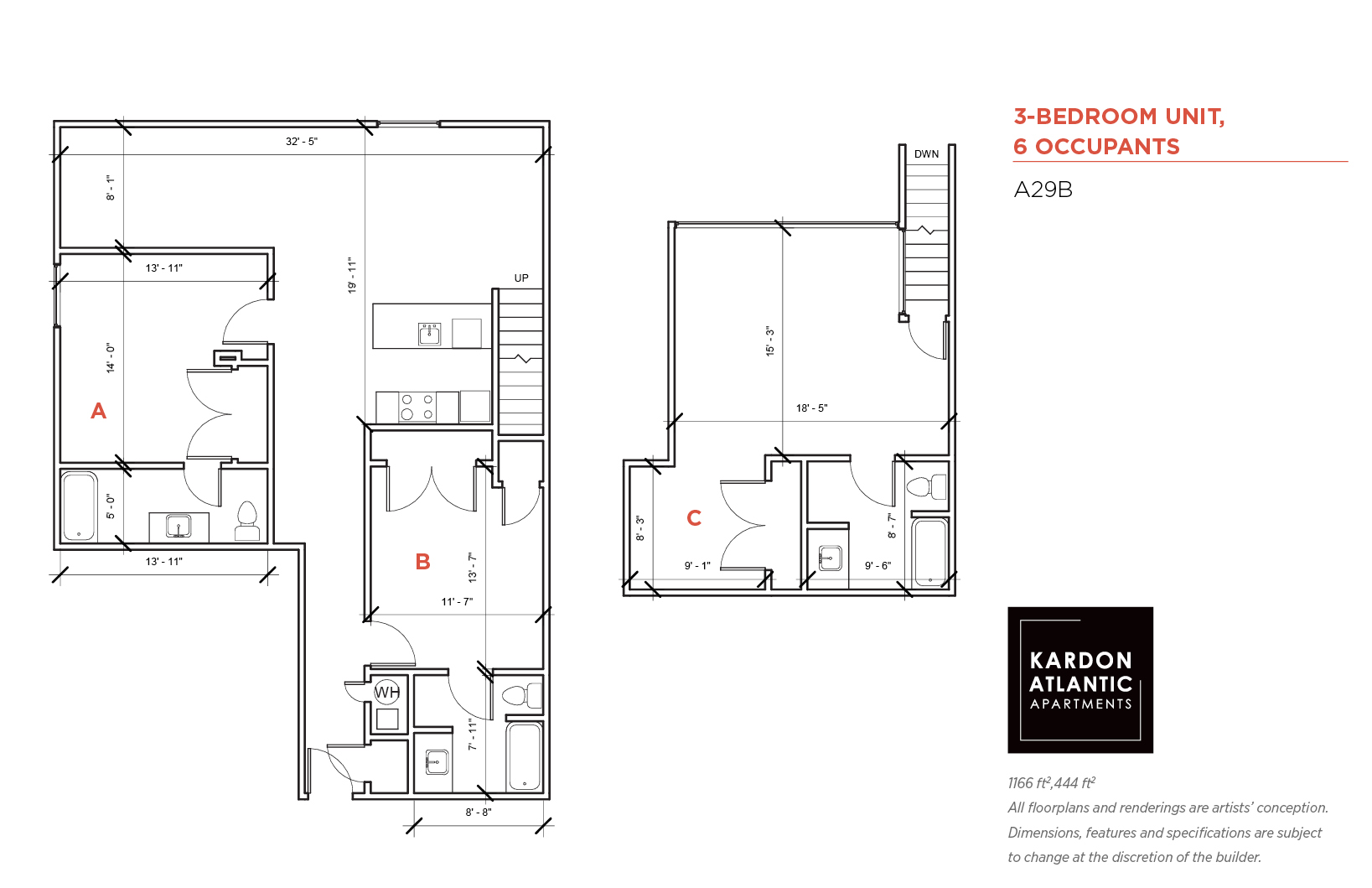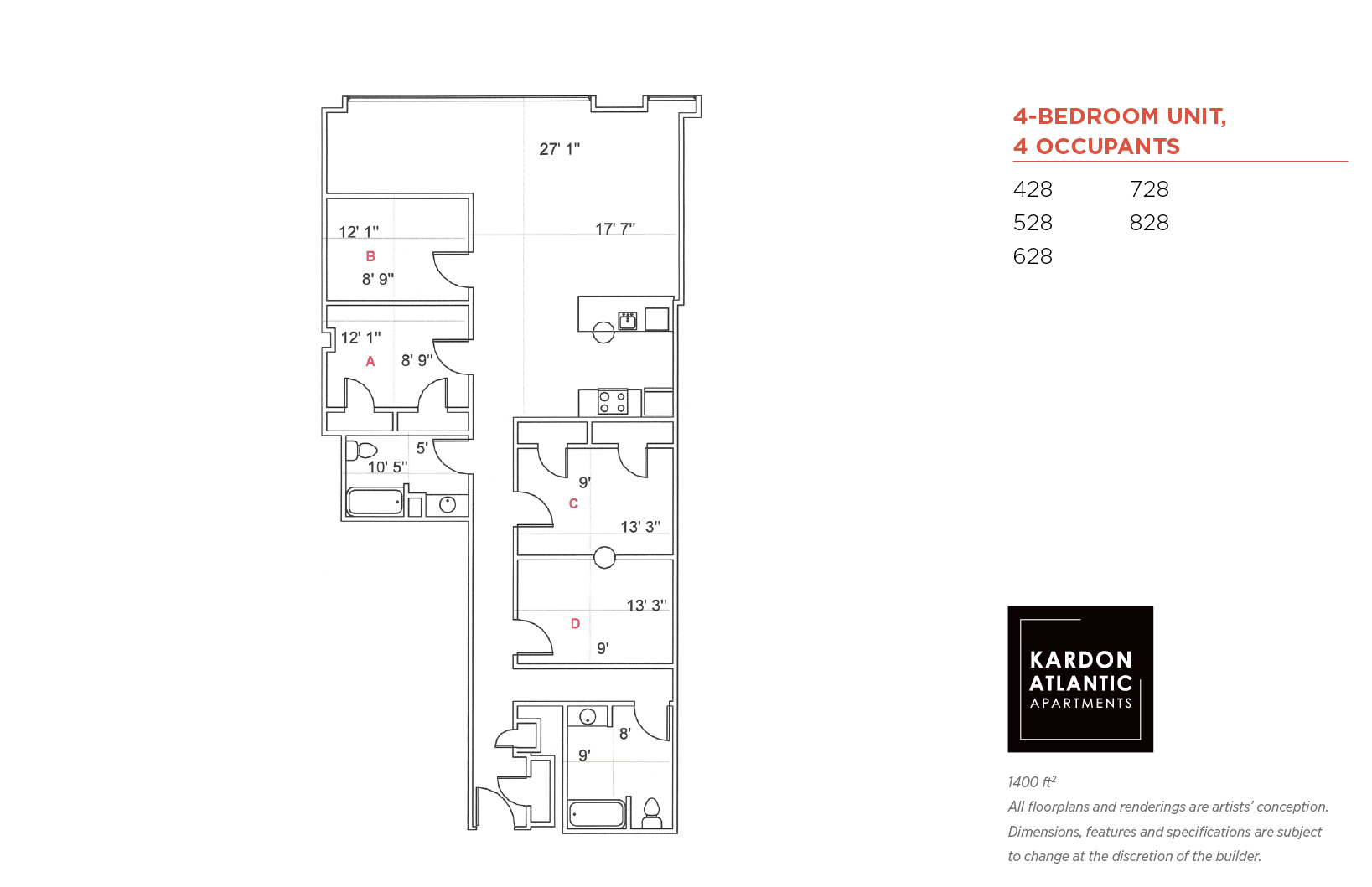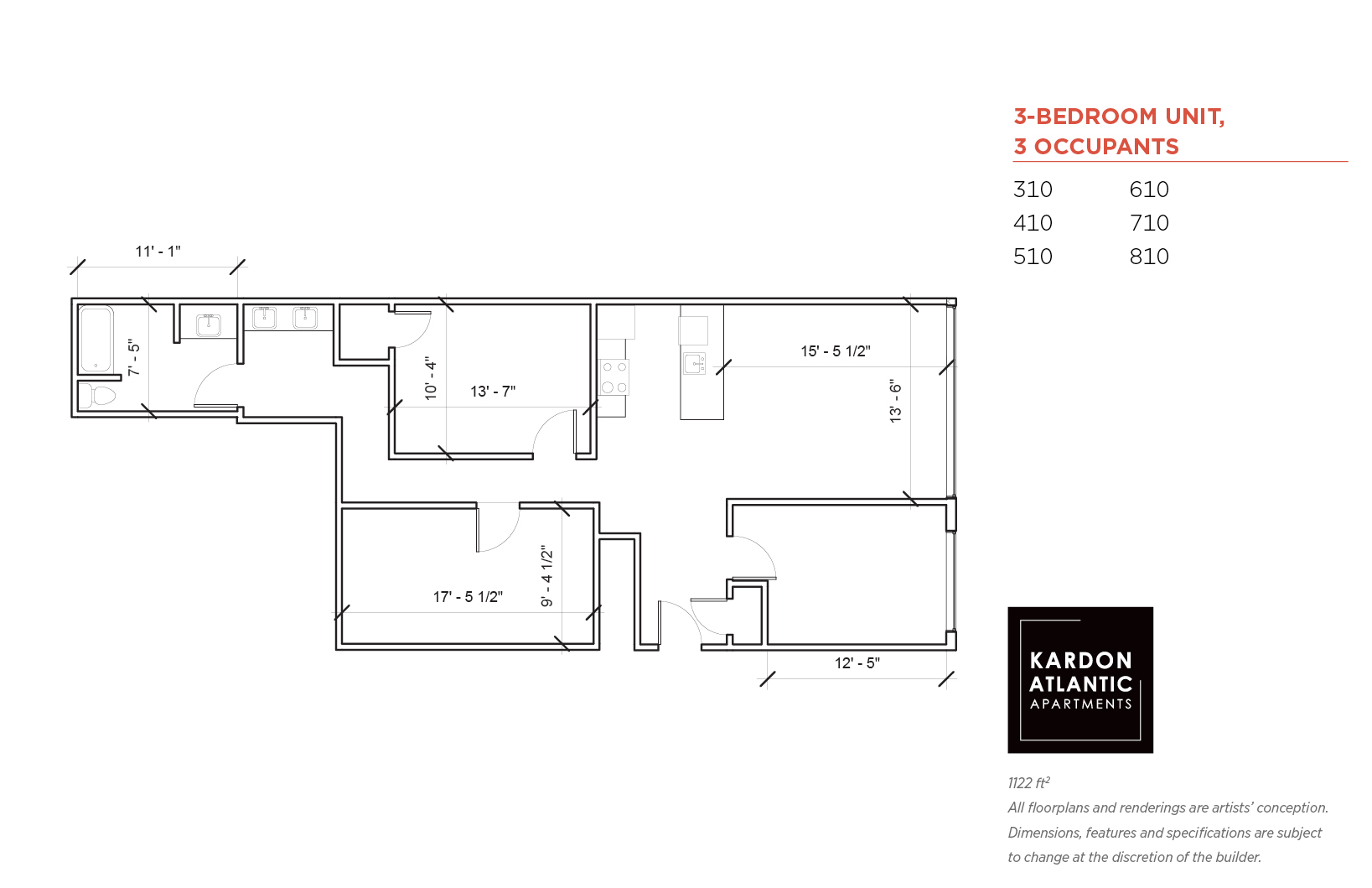 1BR/1BA (up to 3 ppl) $1500-$1650