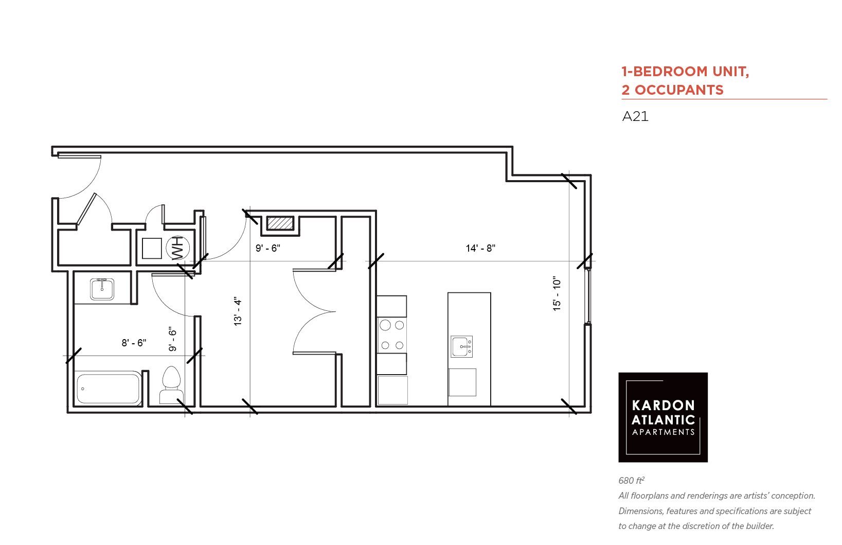 1BR/1BA (up to 2 ppl) $1250-$1500