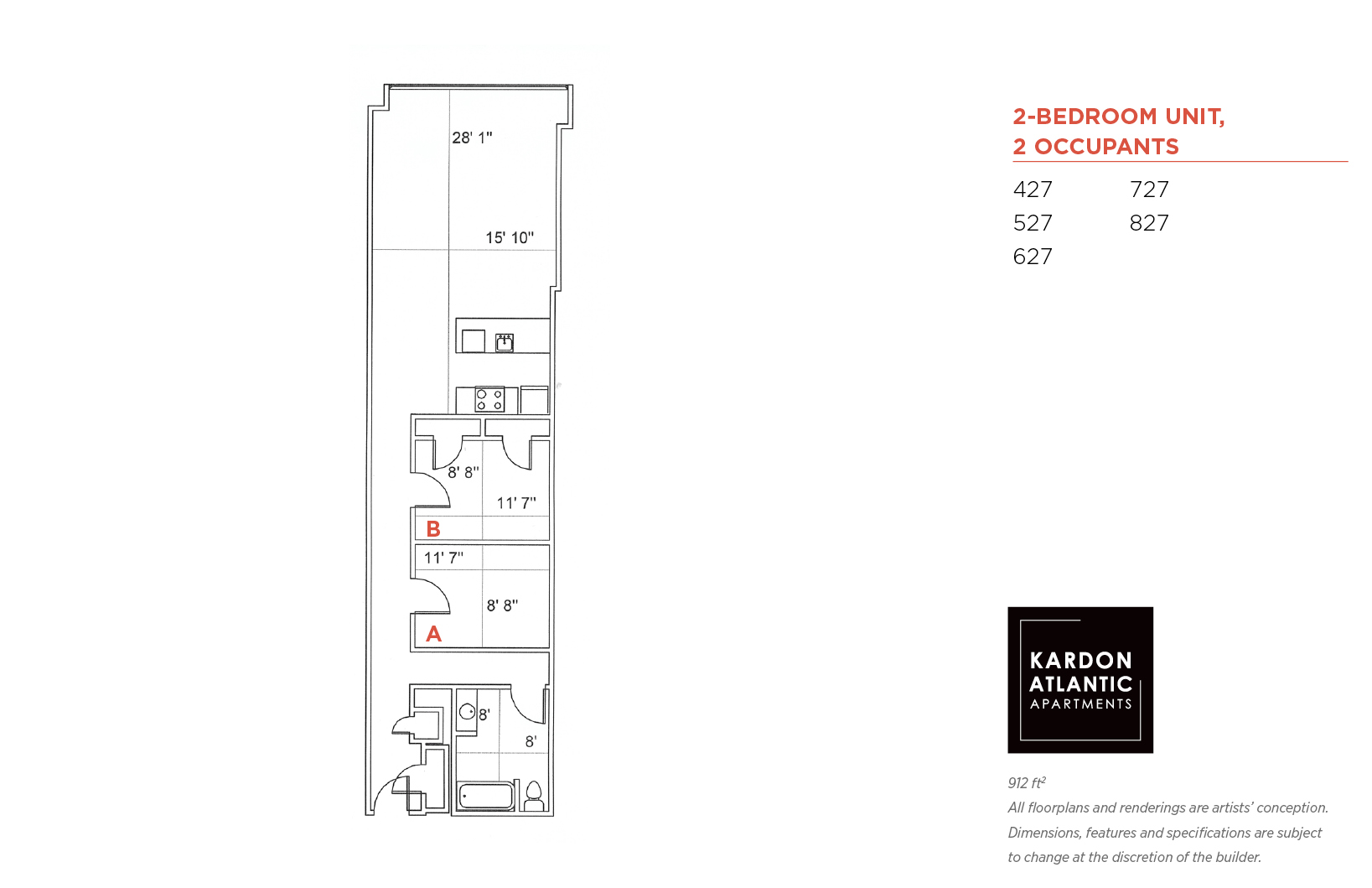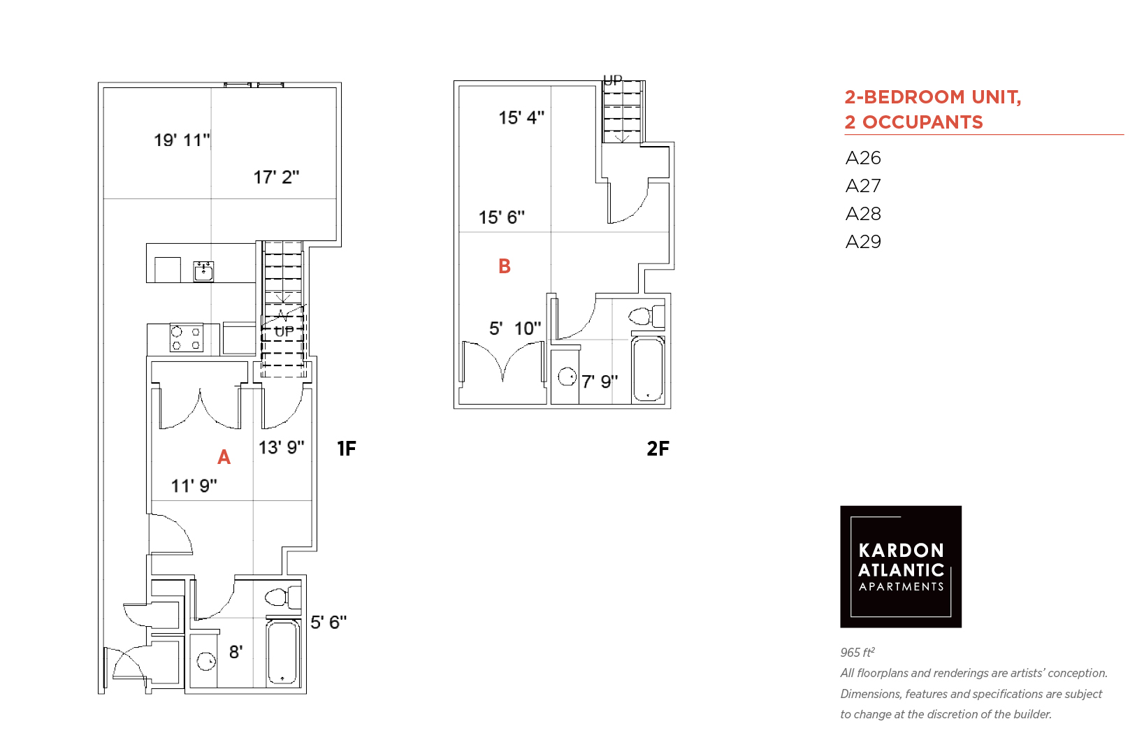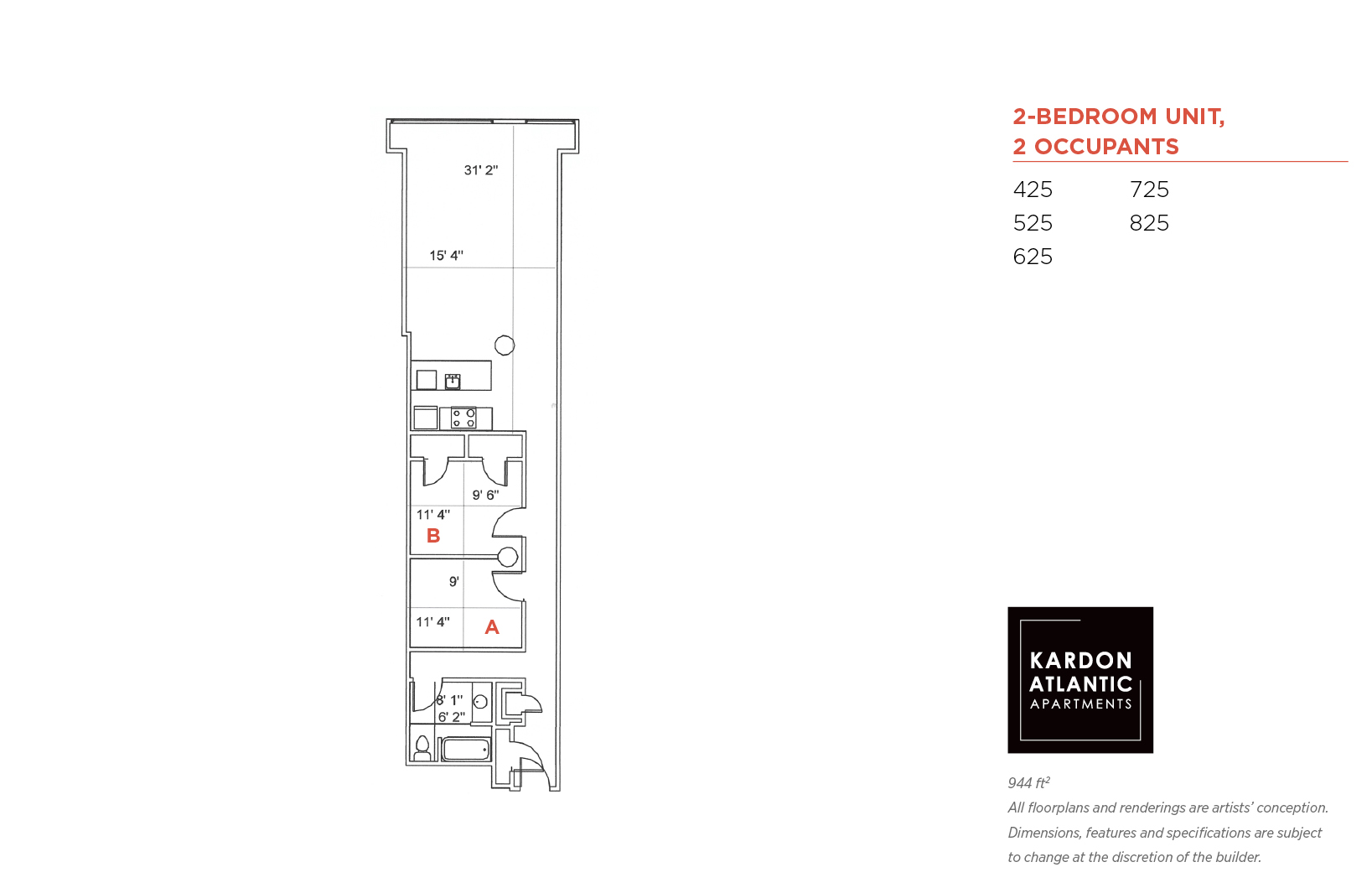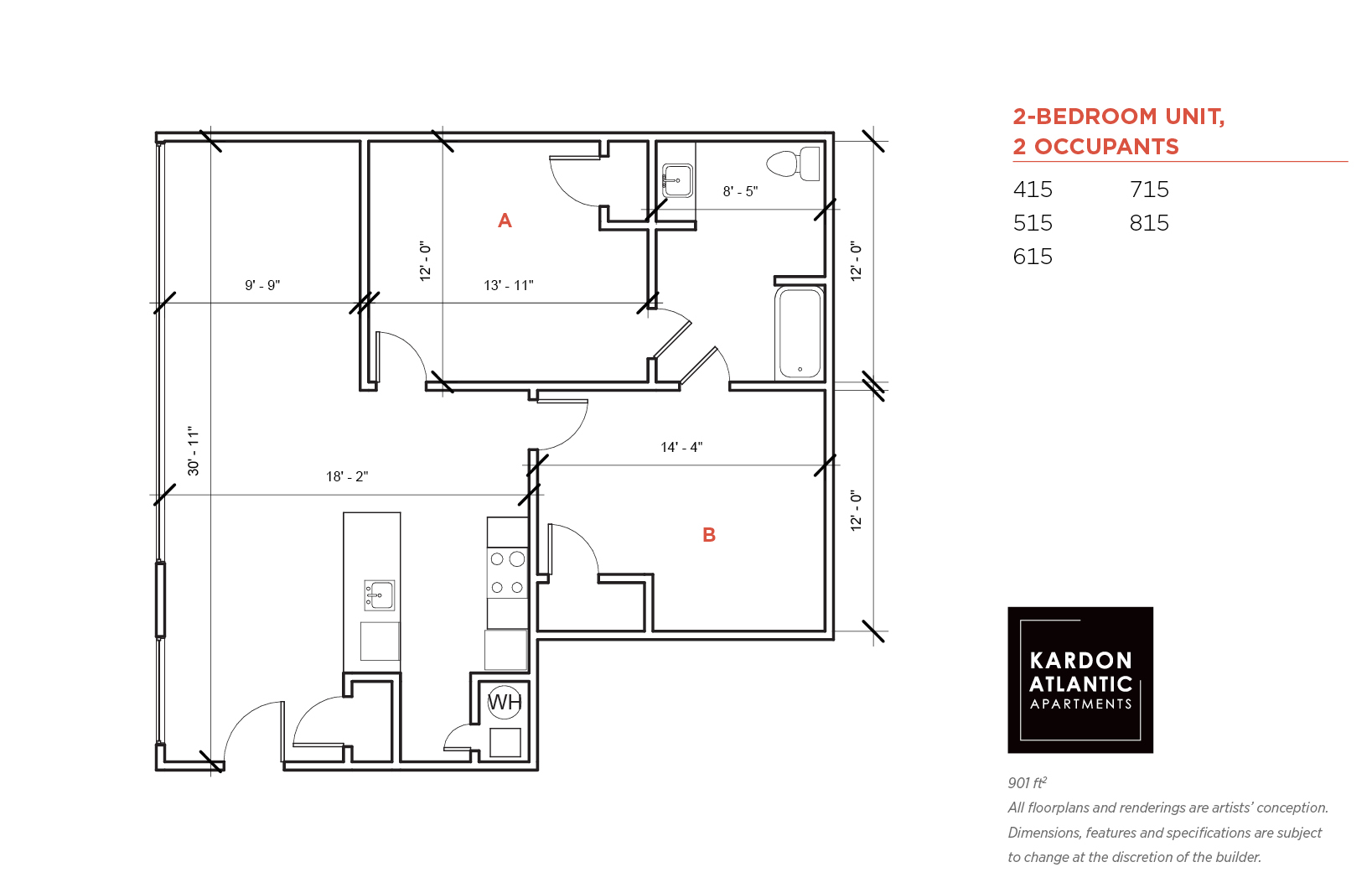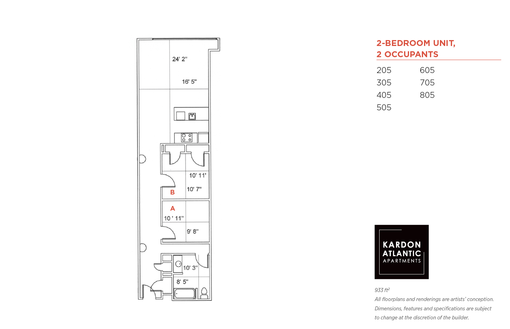 2BR/2BA (up to 4 ppl) $1150-$1250