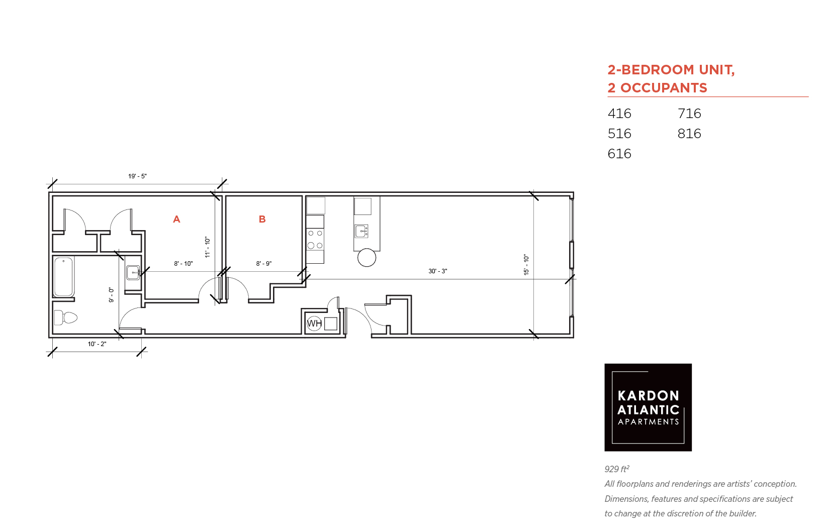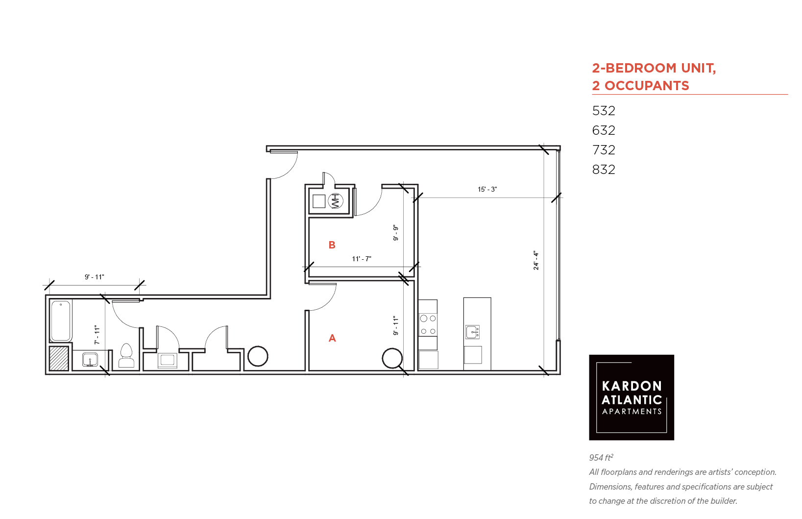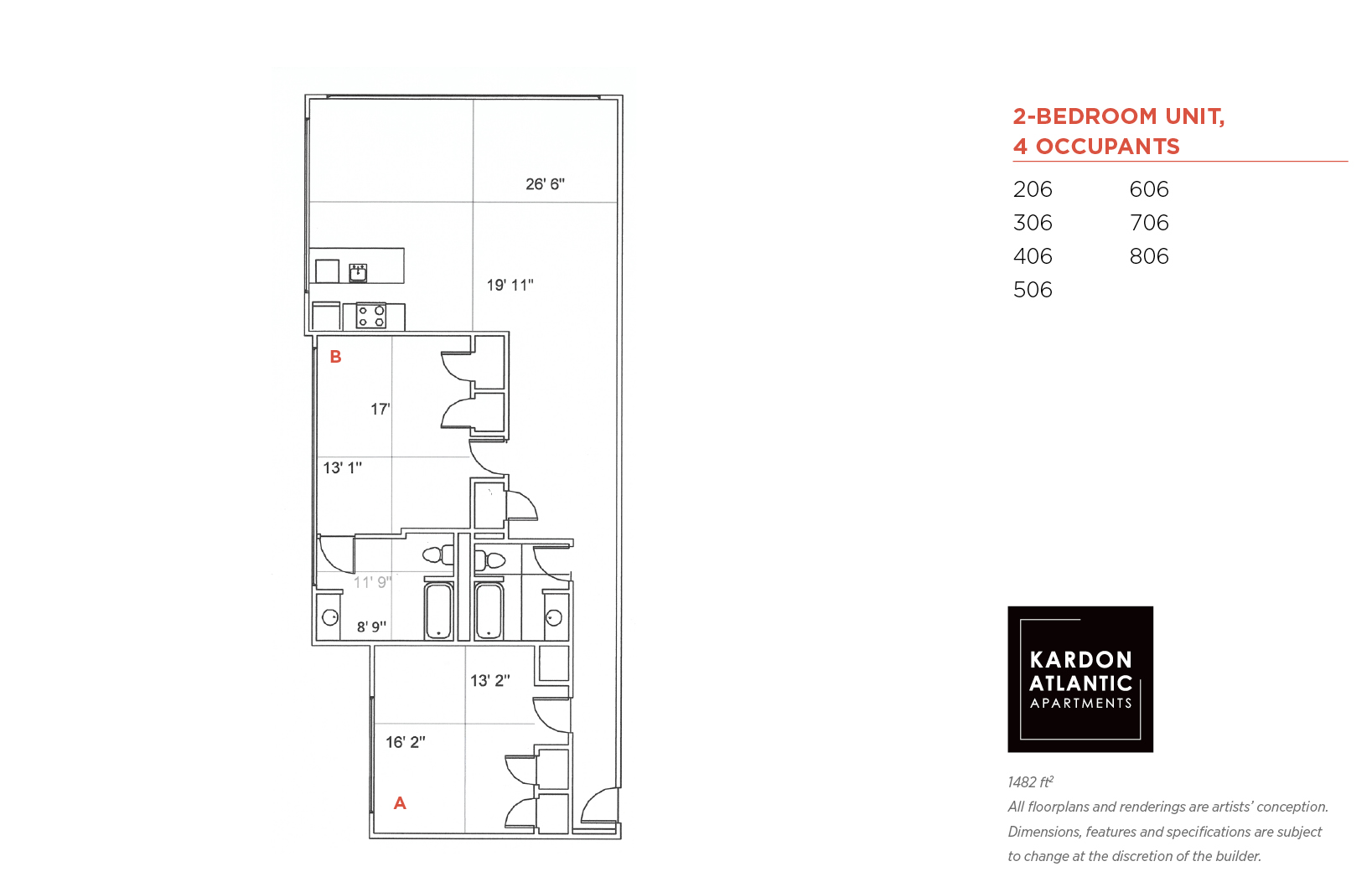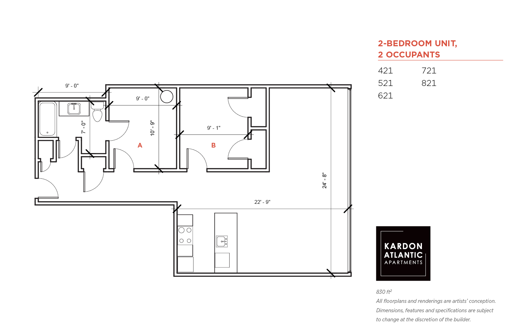 2BR/2BA (up to 4 ppl) $1150-$1250