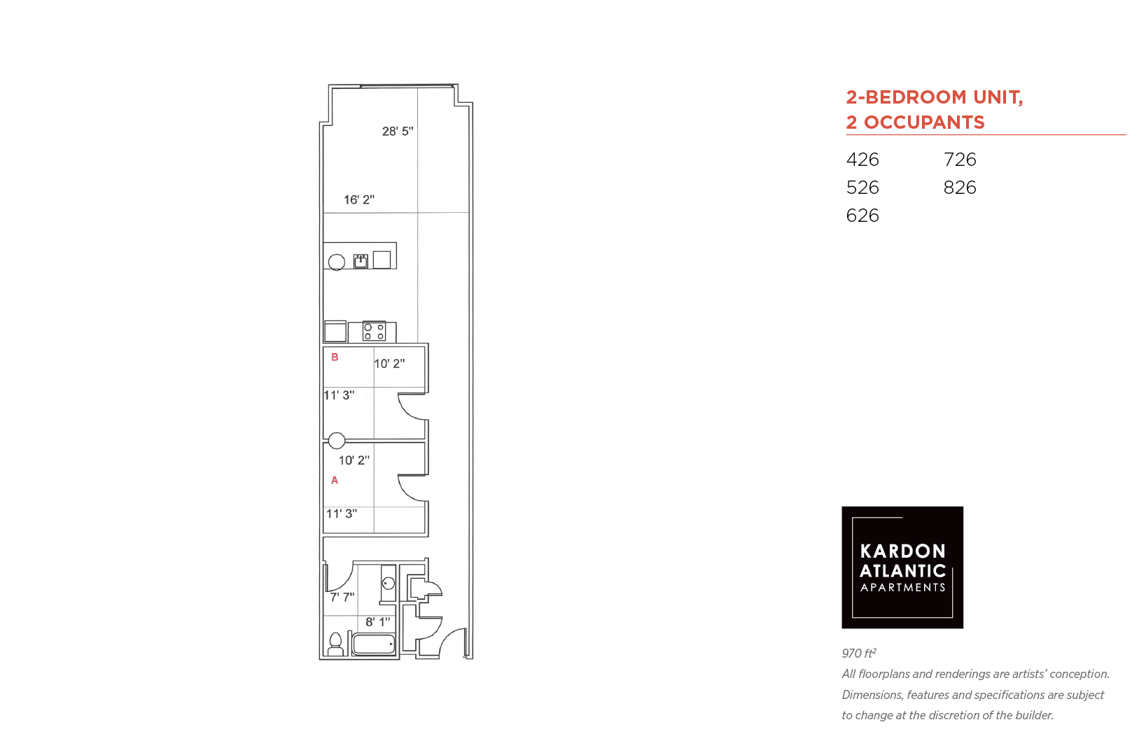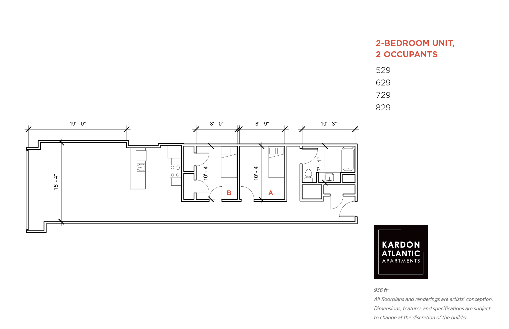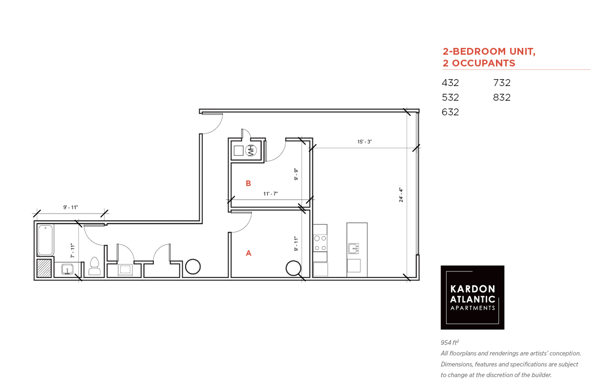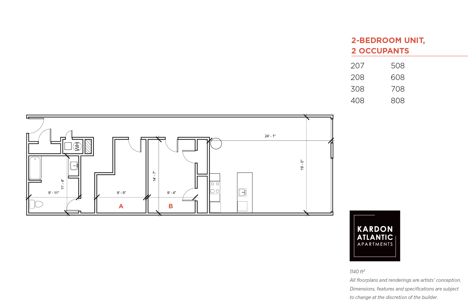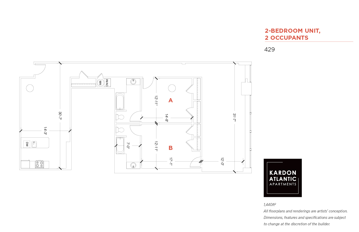 2BR/2BA (up to 4 ppl) $1150-$1250