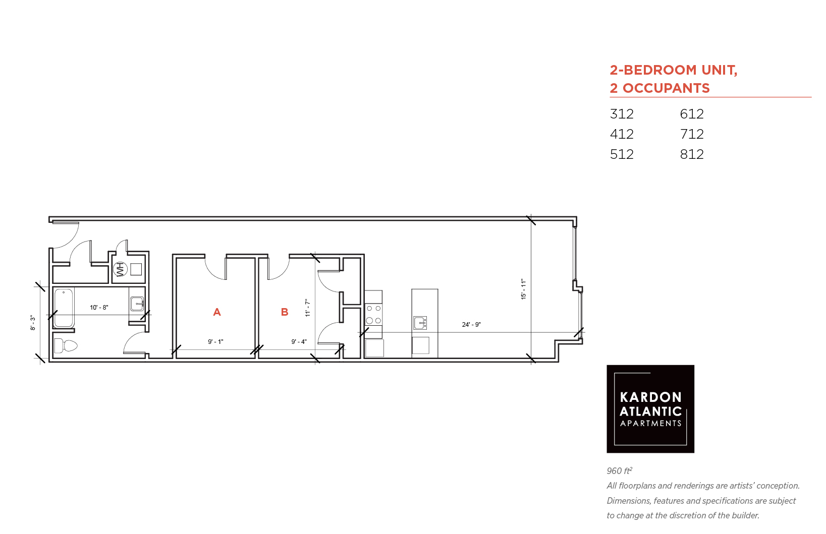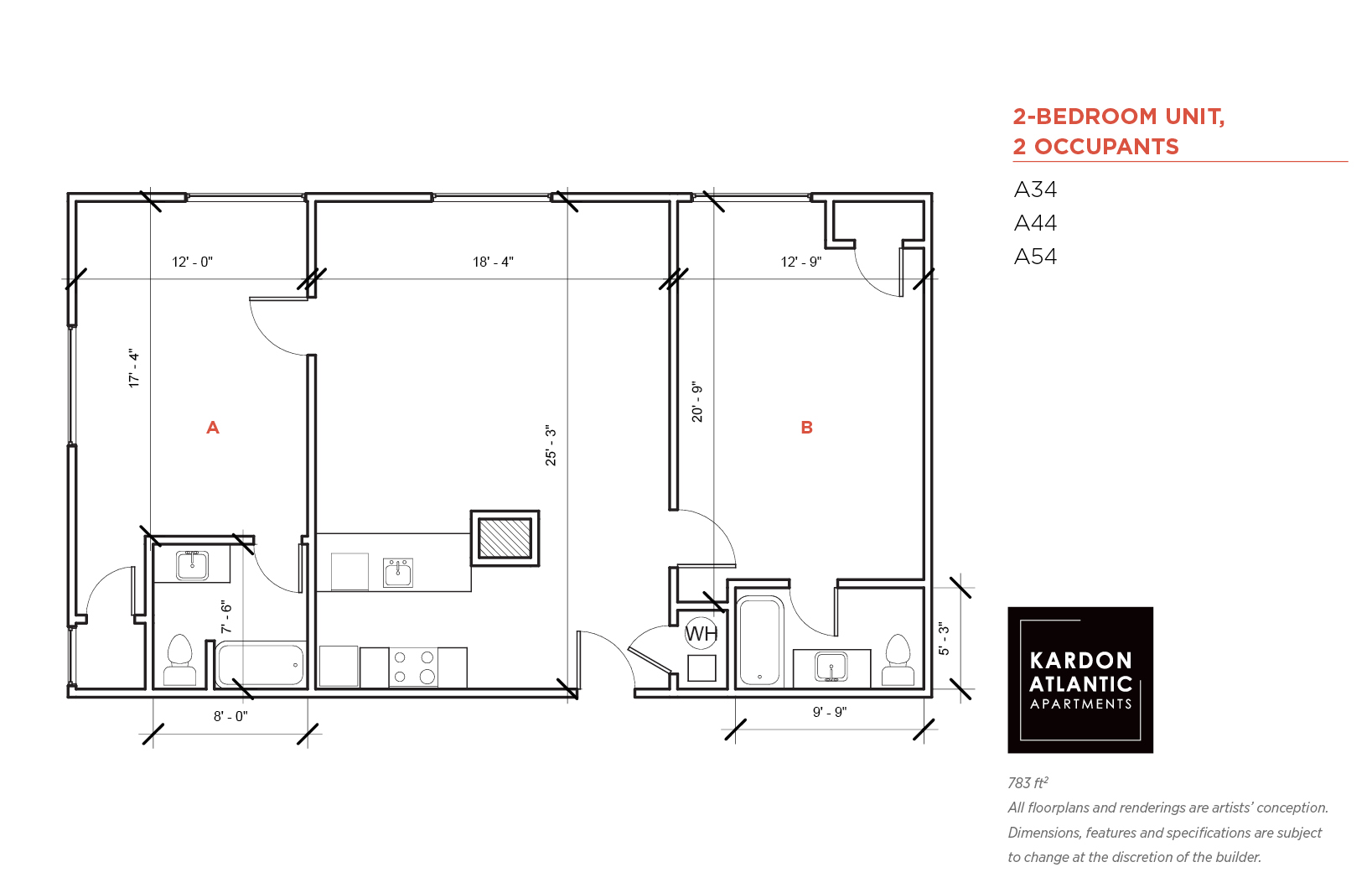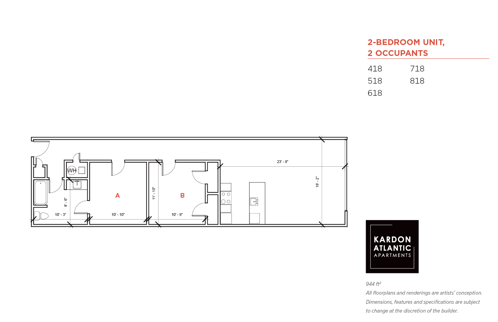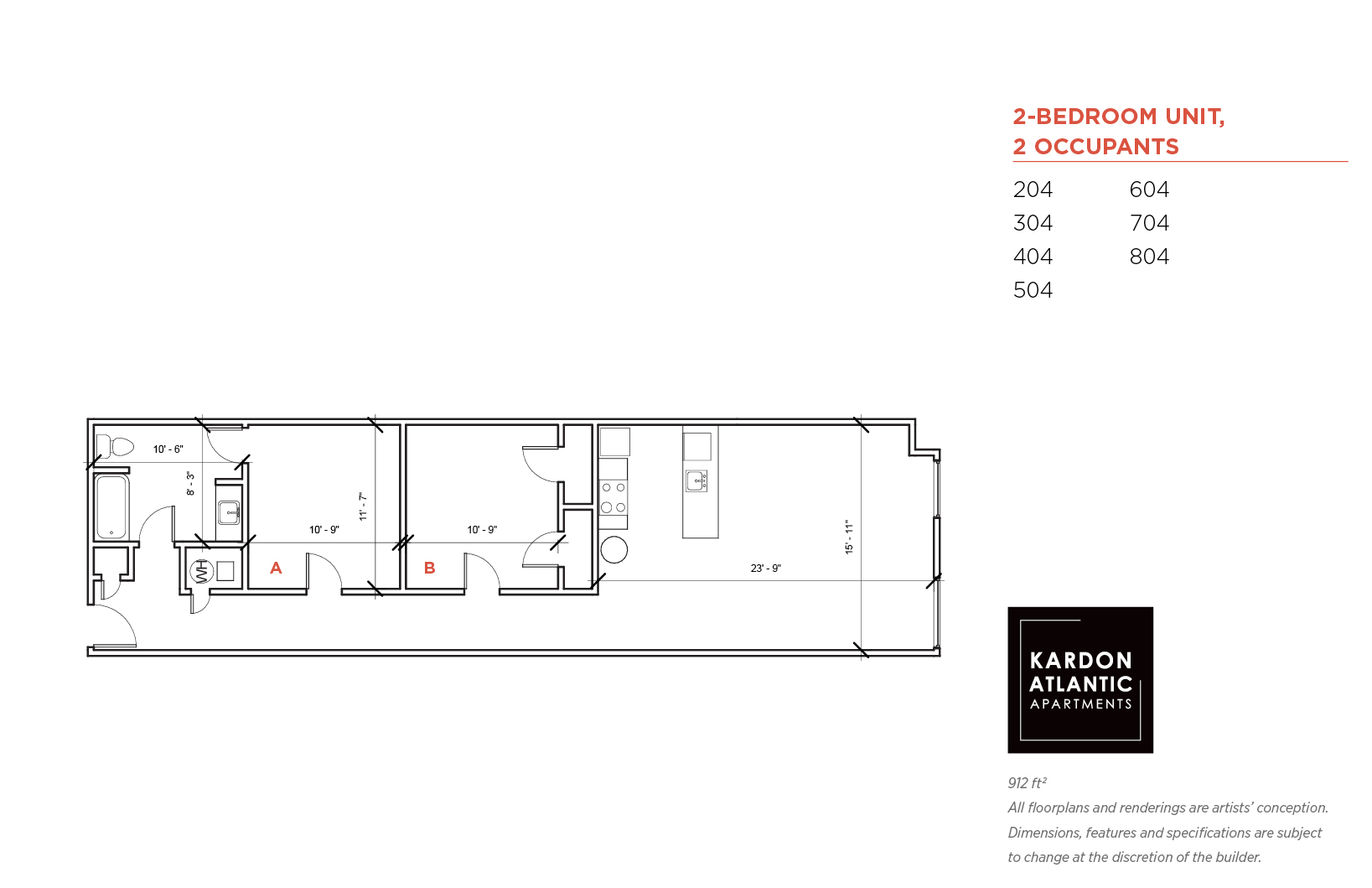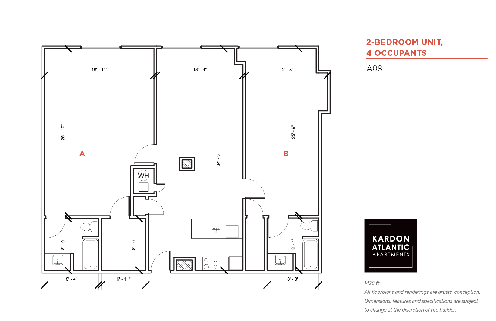 2BR/2BA (up to 4 ppl) $1150-$1250