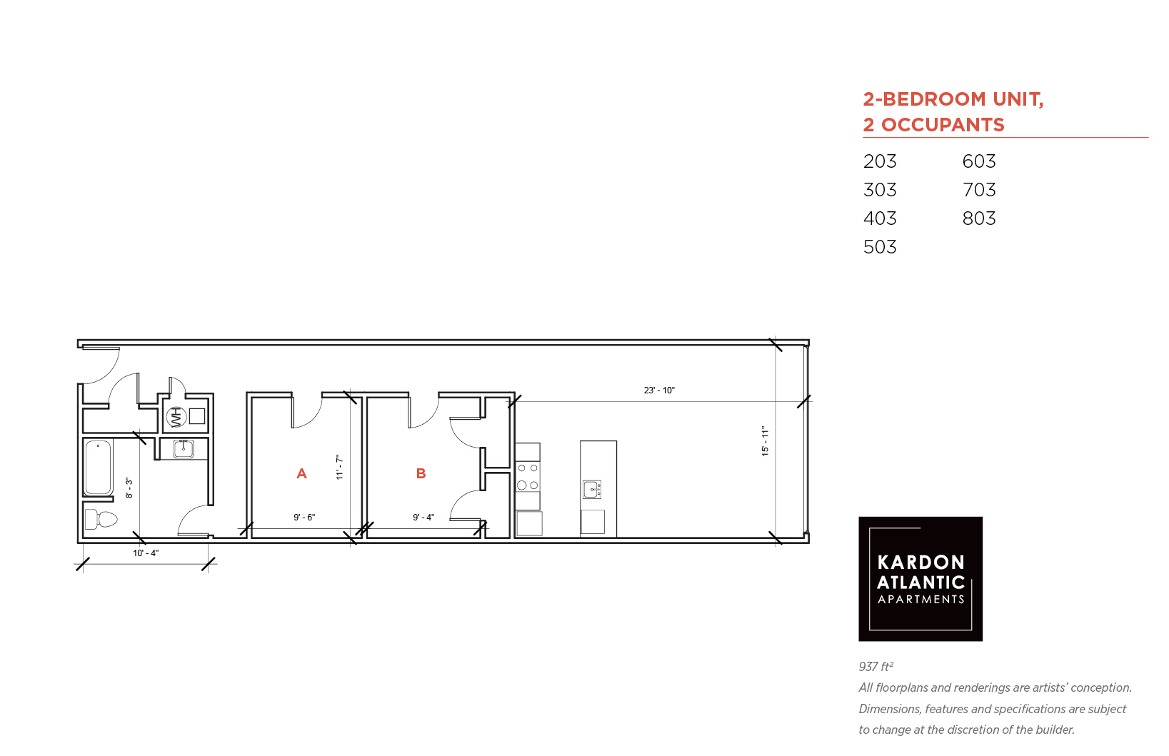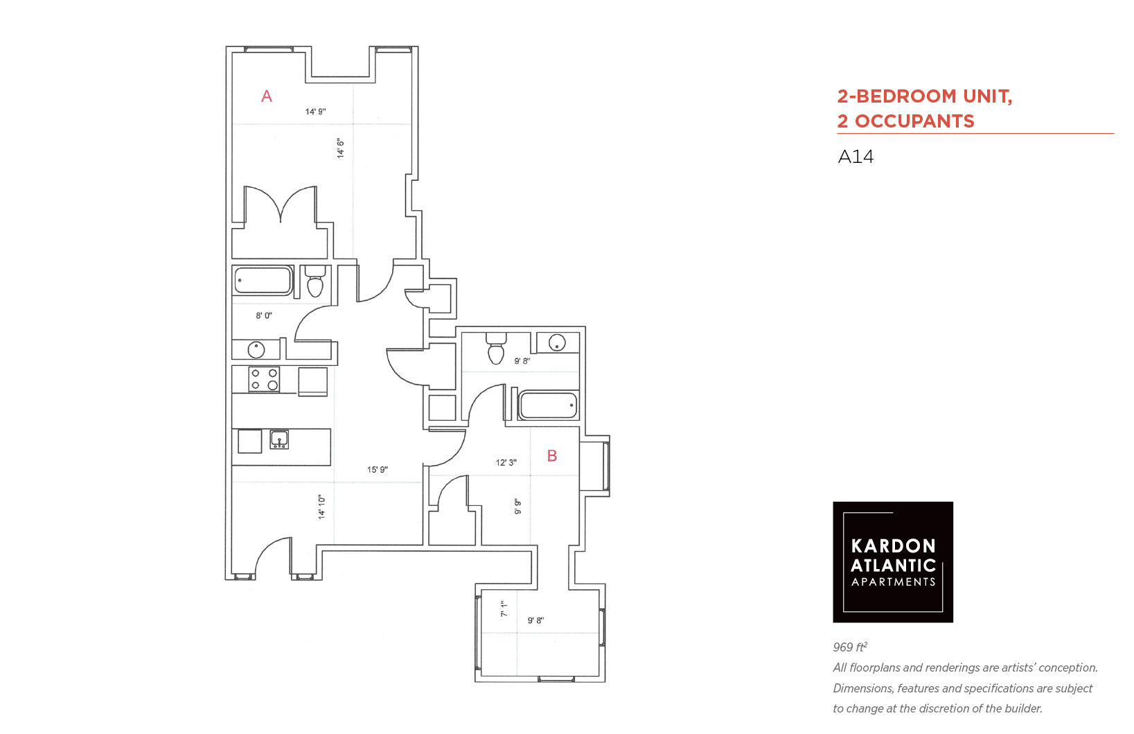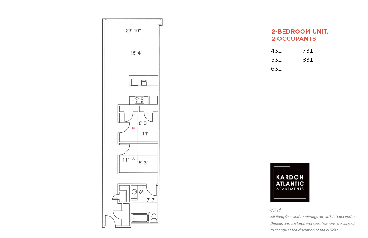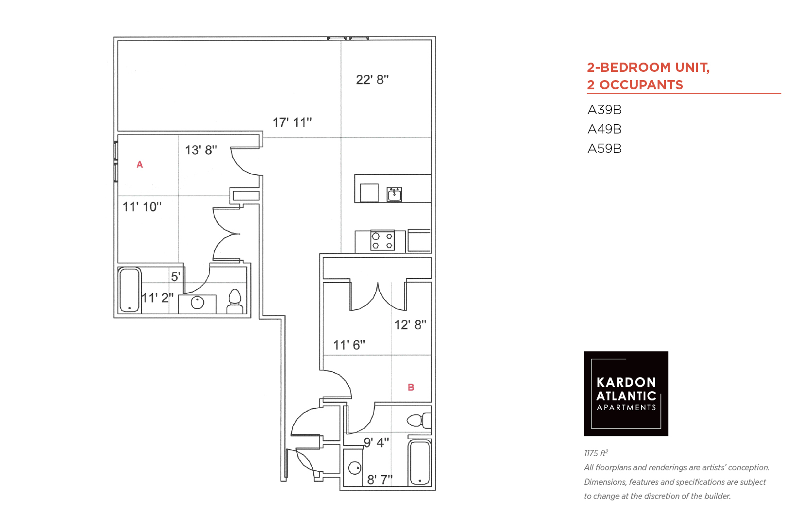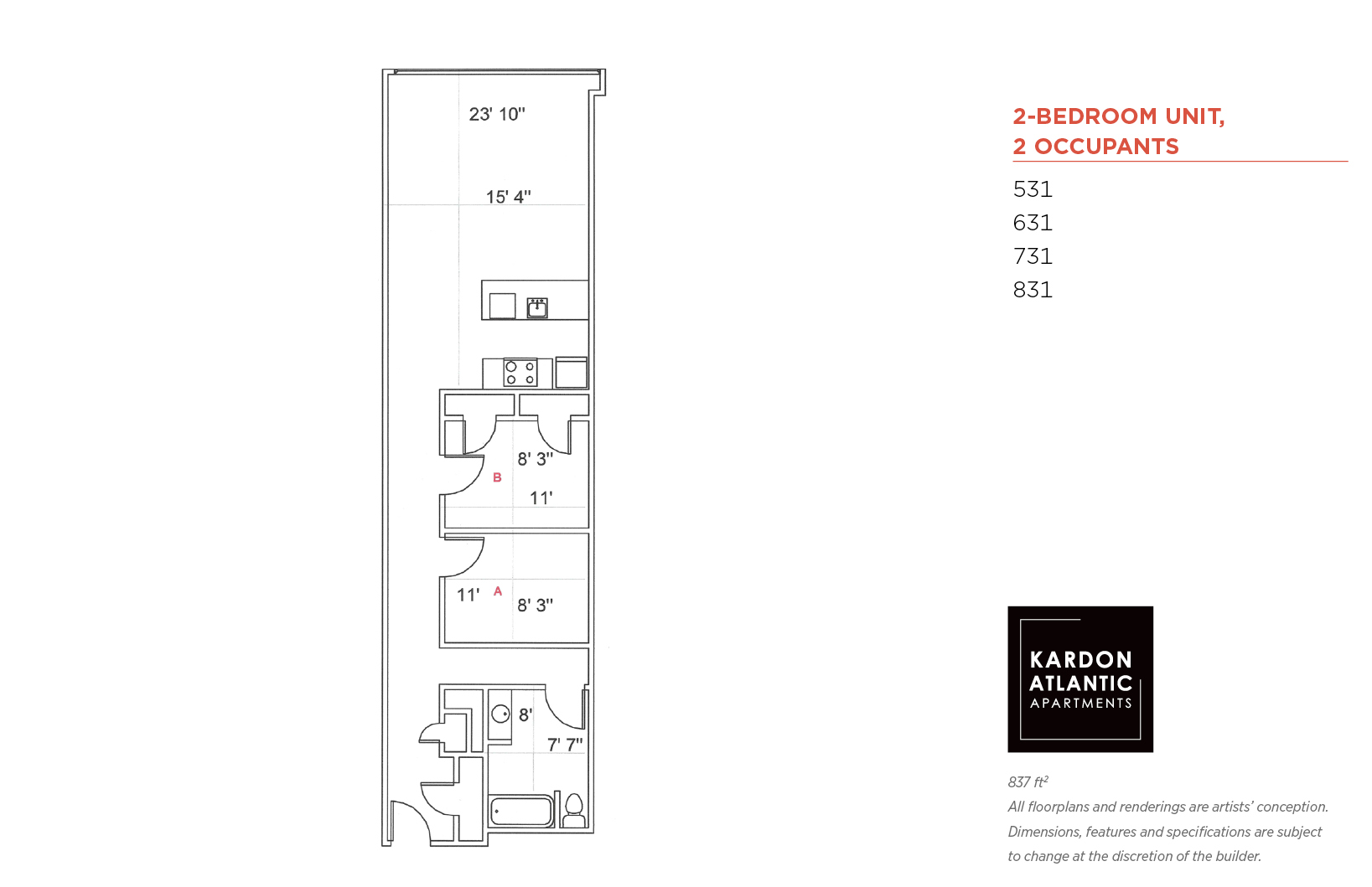 2BR/2BA (up to 4 ppl) $1150-$1250