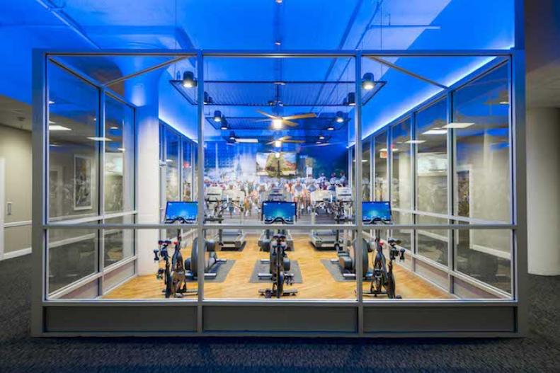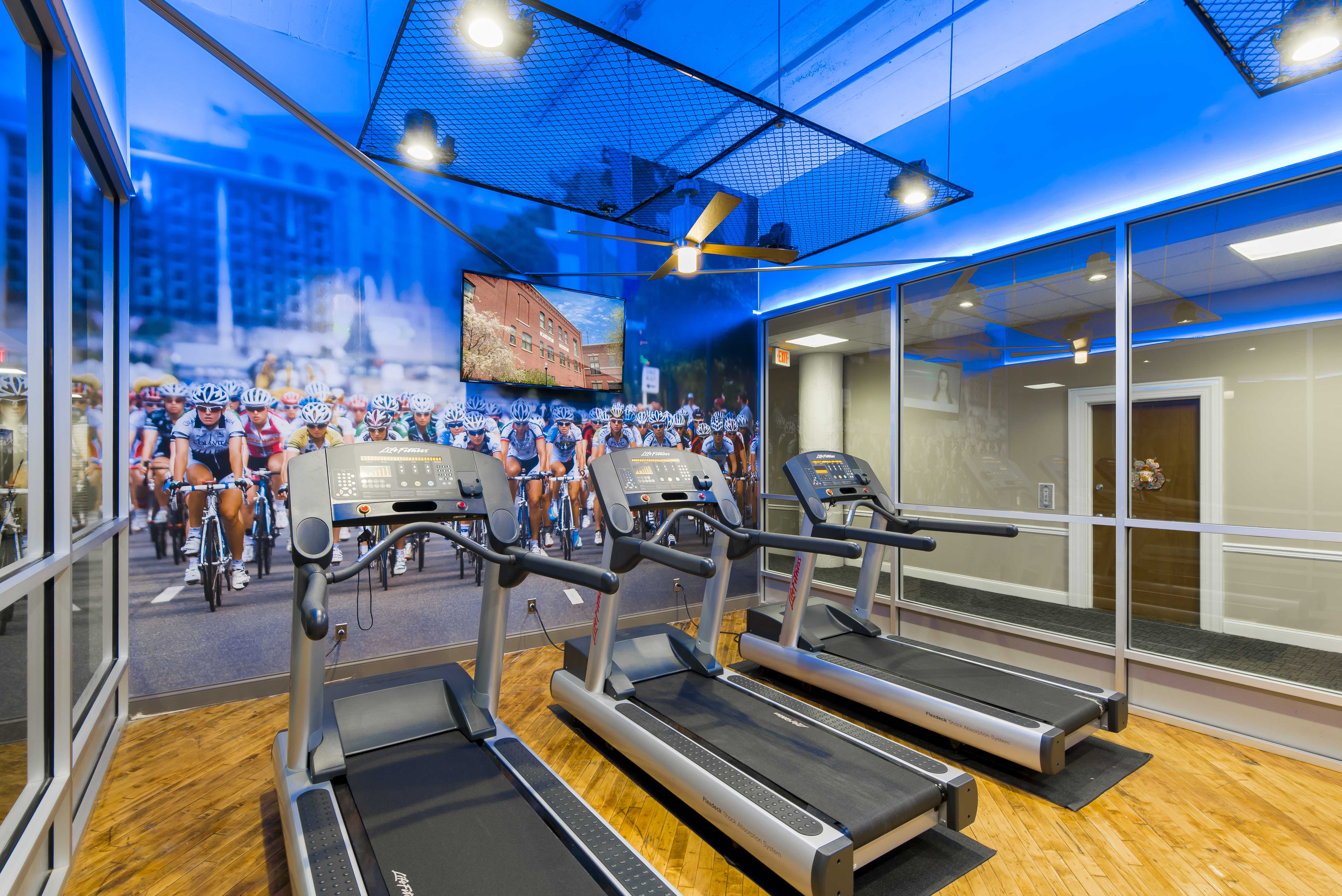 - Fitness center featuring Peloton Cycle® Studio, Life Fitness machines, treadmills & ellipticals