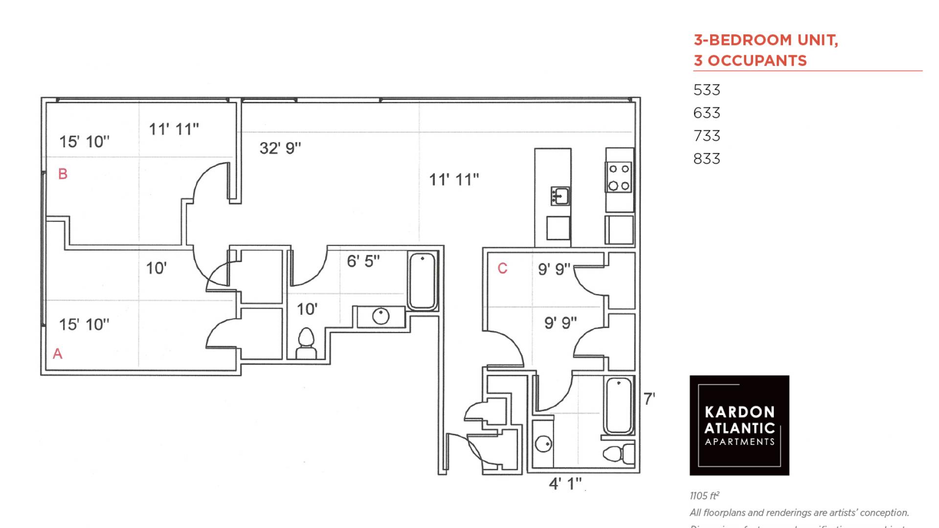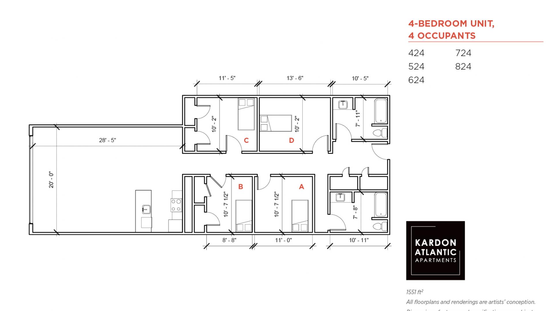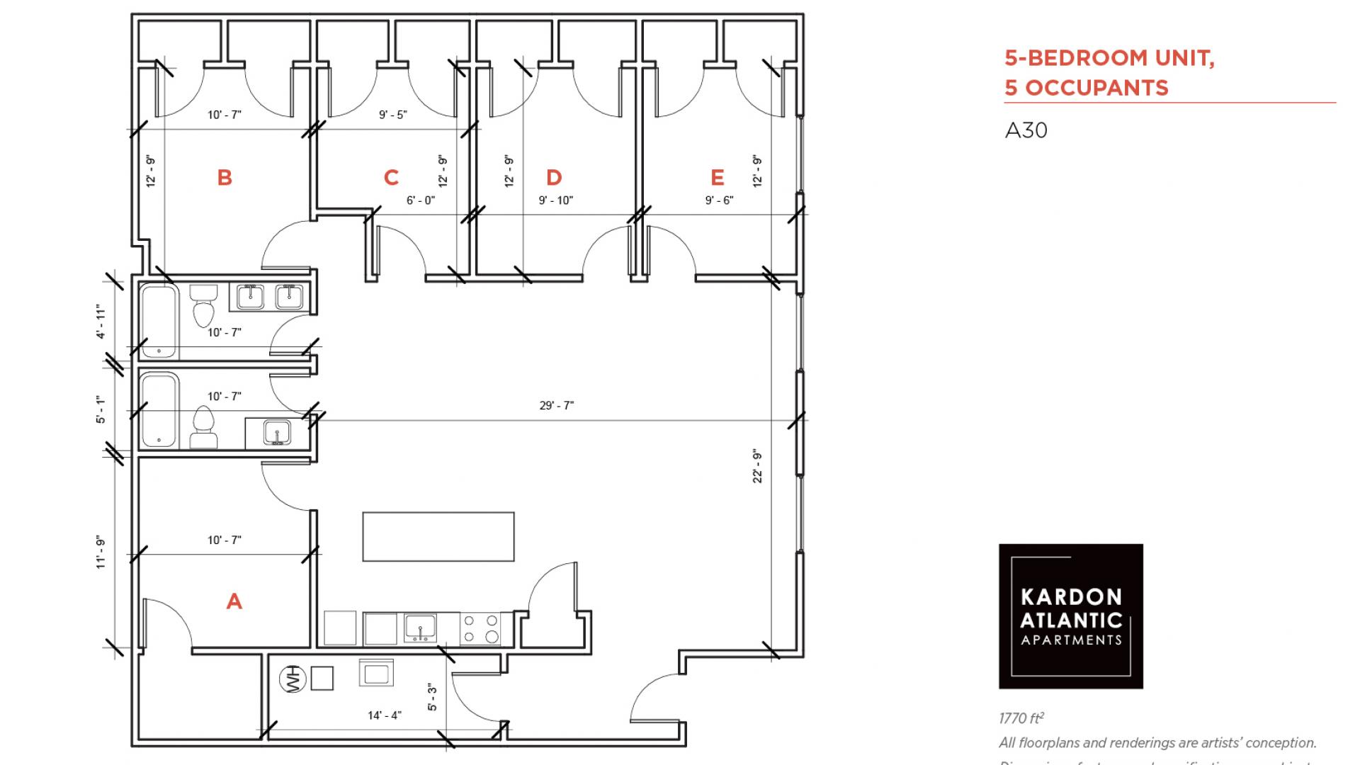 Individual leasing means you are financially responsible for your individual portion of the lease, unlike traditional rentals where a joint lease is signed. If a roommate transfers to another school or moves out of Kardon Atlantic for any reason, you will not be held responsible for their portion of the rent.
